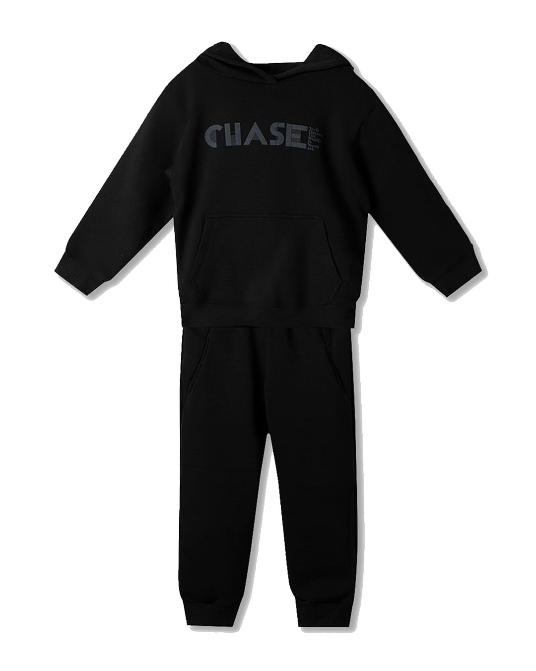 Παιδικό σετ φόρμας fleece μαύρο Chase με κουκούλα