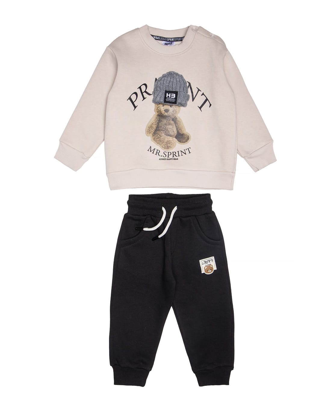 Παιδικό σετ φόρμας fleece μπεζ-μαύρο με Αρκουδάκι