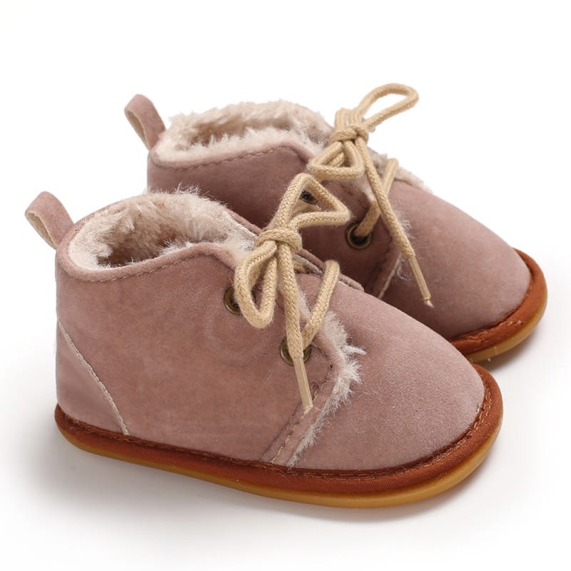 Παπούτσια αγκαλιάς ροζ σουέτ με εσωτερικό γουνάκι
