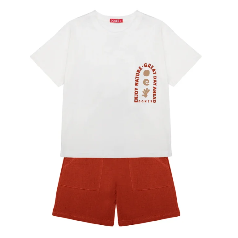 Παιδικό σετ για αγόρι λευκό-κεραμιδί με σορτς
