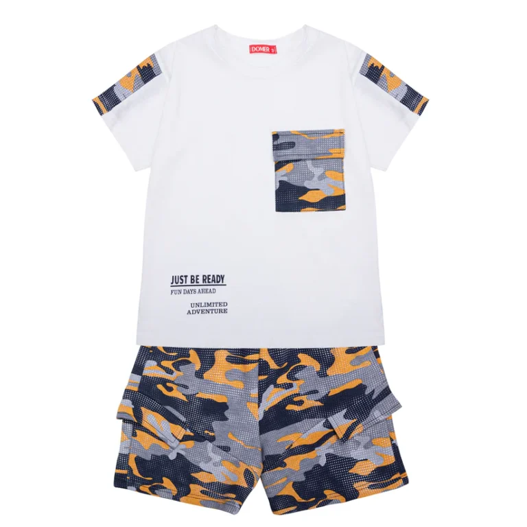 Παιδικό σετ για αγόρι λευκό-millitary με σορτς