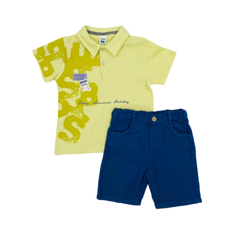 Παιδικό σετ για αγόρι λαδί με μπλούζα ριγέ τύπου polo