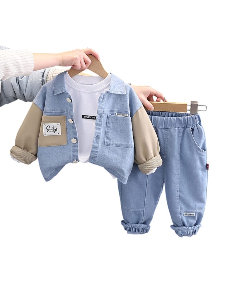Παιδικό σετ total τζιν με μπεζ λεπτομέρειες (3 τμχ)