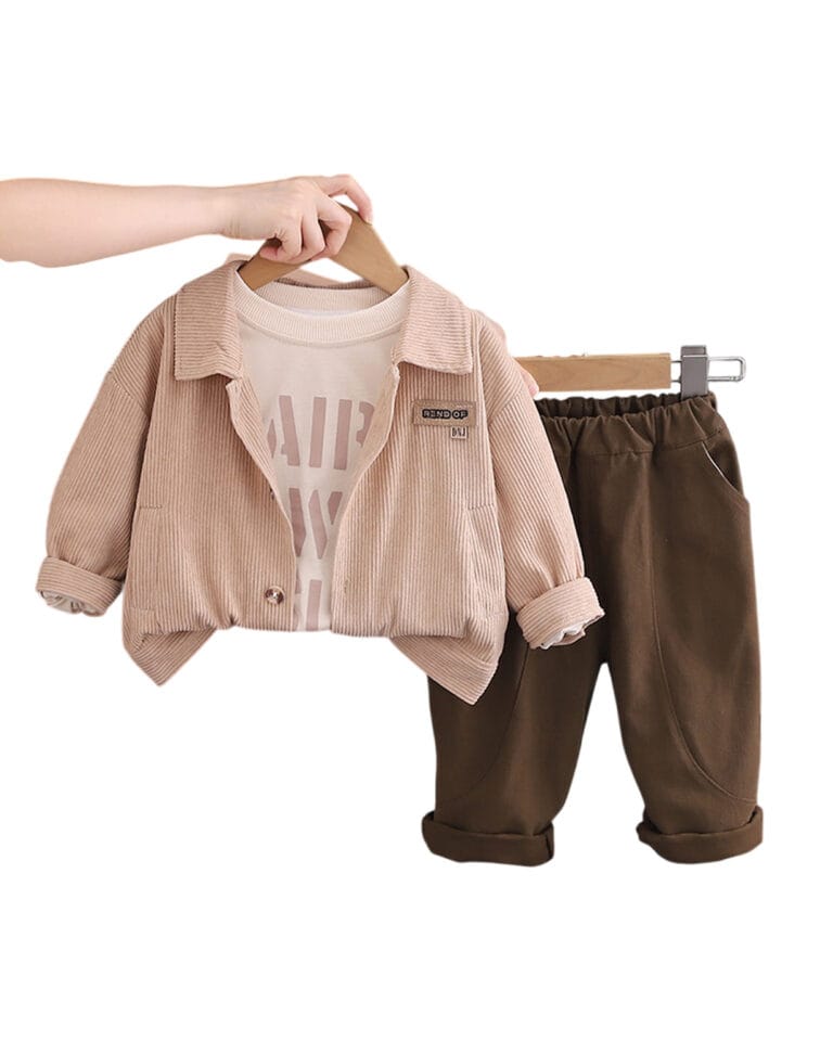Παιδικό σετ μπεζ-λαδί με κοτλέ πουκάμισο (3 τμχ)