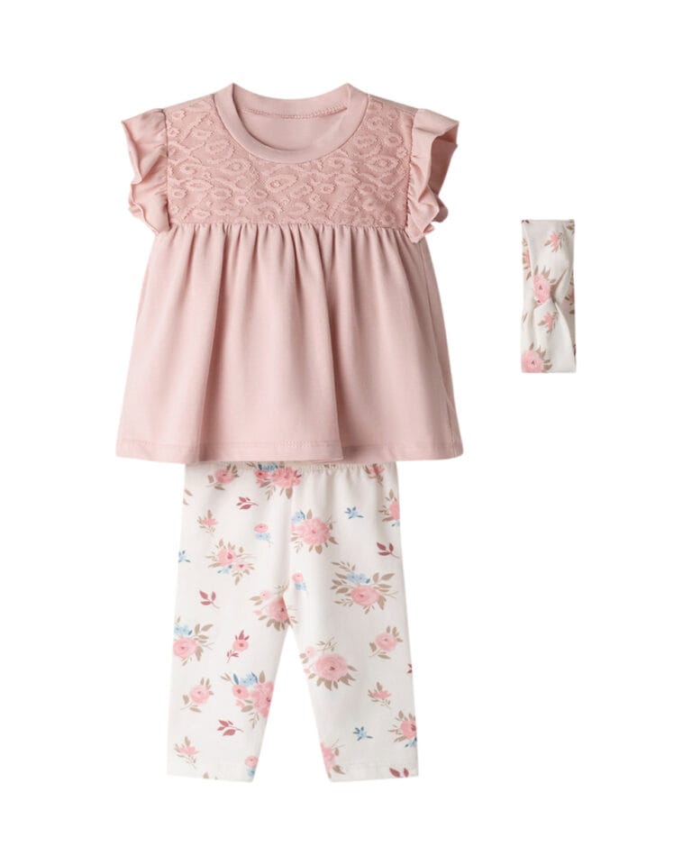 Βρεφικό σετ ροζ απαλό-λευκό floral με κολάν capri και κορδέλα μαλλιών