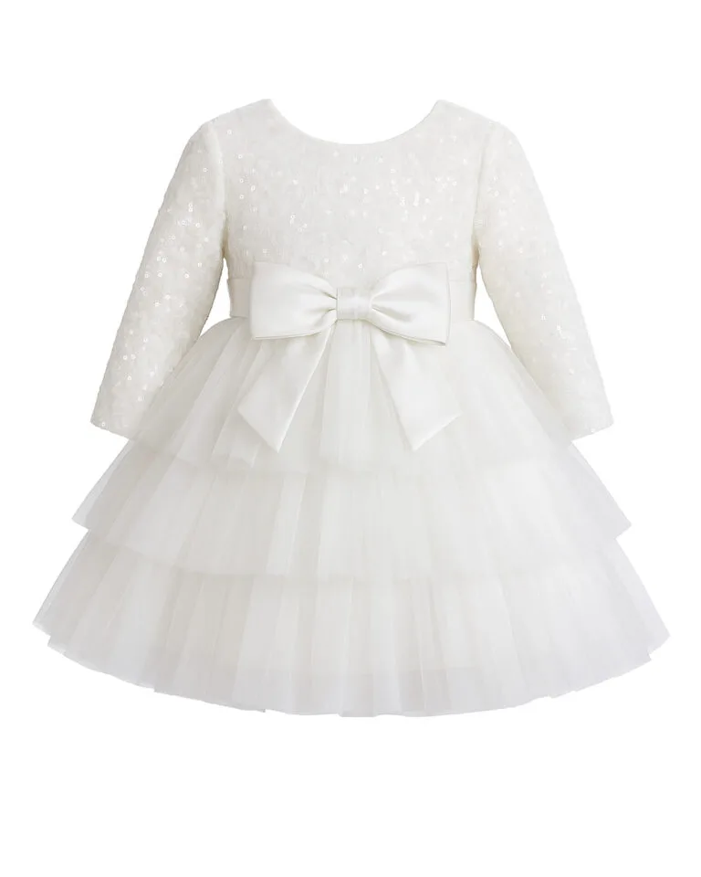 Παιδικό φόρεμα λευκό βελουτέ-παγιέτα-τούλι
