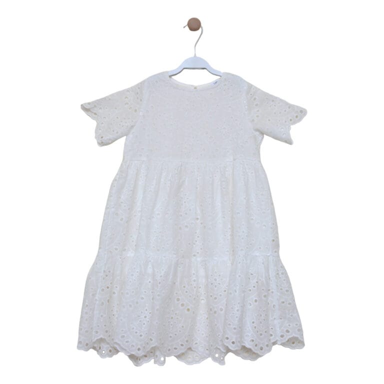 Φόρεμα λευκό κοντομάνικο από κιπούρ δαντέλα