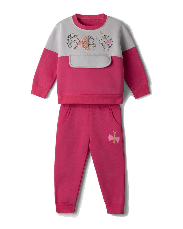 Παιδικό σετ φόρμας fleece φούξια-γκρι Σκαντζοχοιράκια