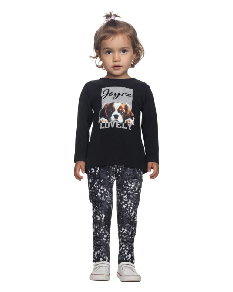 Παιδικό σετ αχνούδιαστο μαύρο Lovely puppy με κολάν
