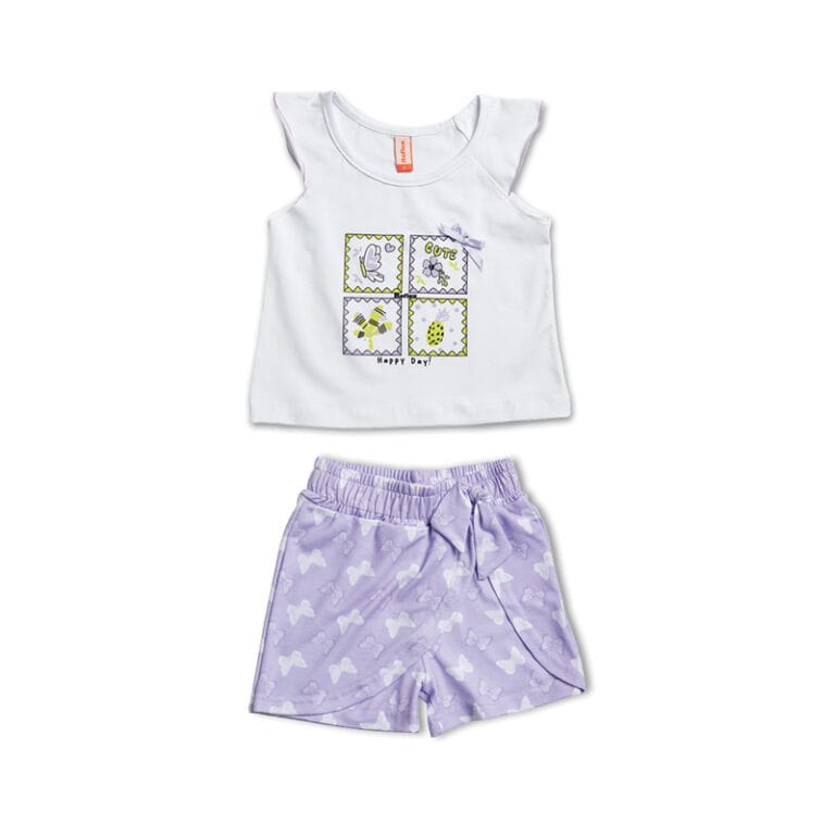 Παιδικό σετ λευκό-λιλά Πεταλούδες με σορτς/φούστα