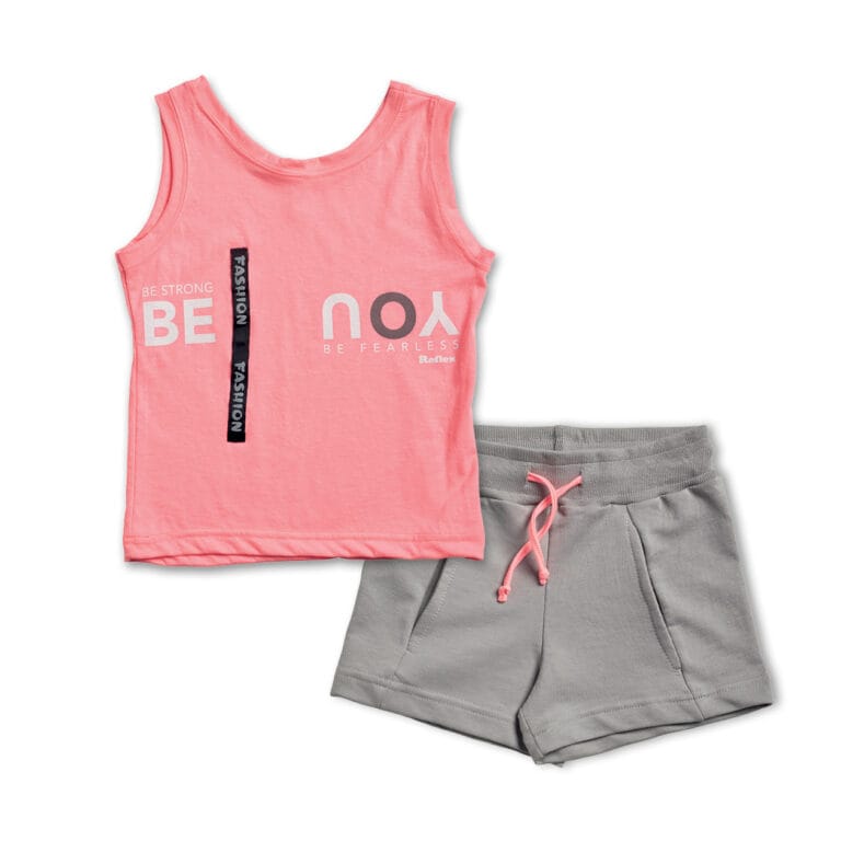 Παιδικό σετ για κορίτσι fluo ροζ-γκρι με σορτς