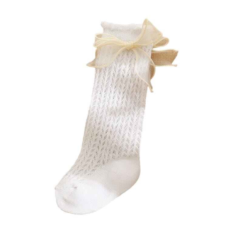 Κάλτσες λευκές πλεκτές ψηλές με μεγάλο φιόγκο στο πλάι