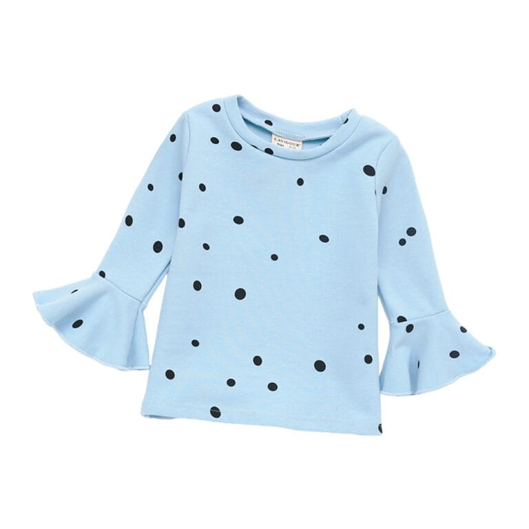 Μπλούζα γαλάζια πουά με μικρή καμπάνια στα μανίκια