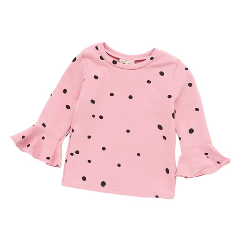 Μπλούζα ροζ πουά με μικρή καμπάνια στα μανίκια
