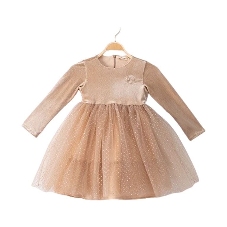 Φόρεμα nude βελουτέ-glitter και ασορτί στέκα μαλλιών