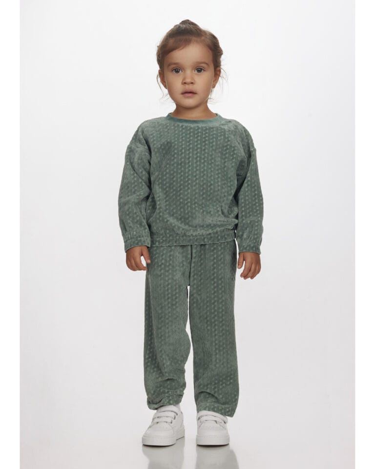 Παιδικό σετ φόρμας ανάγλυφο βελουτέ στο χρώμα της ελιάς