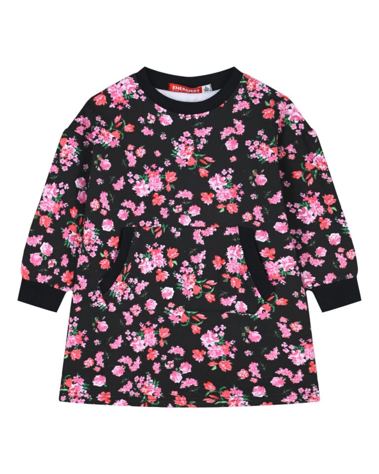 Παιδικό φόρεμα μαύρο floral με τσέπη