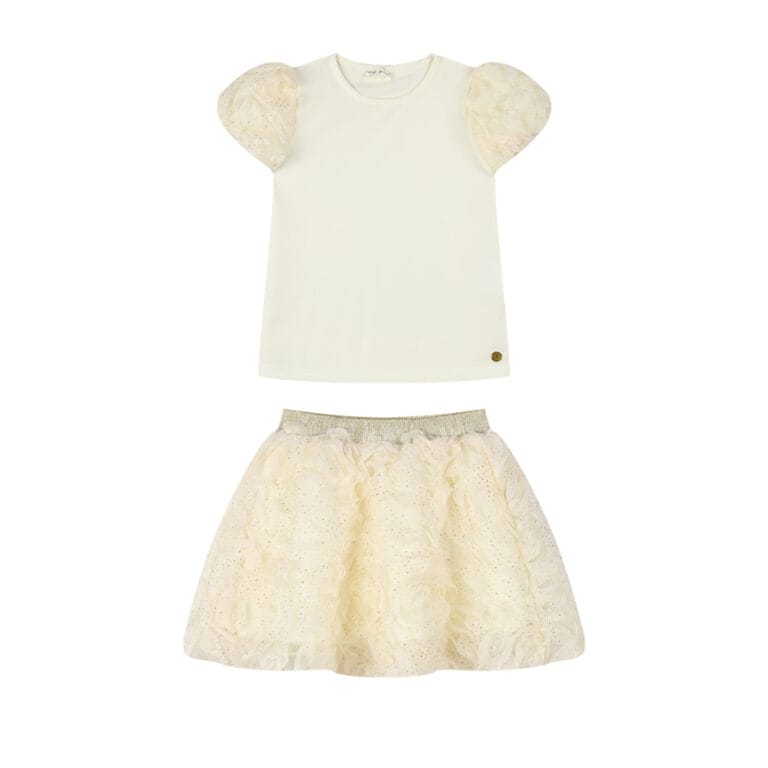 Παιδικό σετ για κορίτσι εκρού με ανάγλυφη φούστα