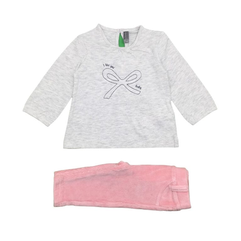 Σετ – Μπλούζα γκρι με φιογκάκι και κολάν ροζ κοτλέ