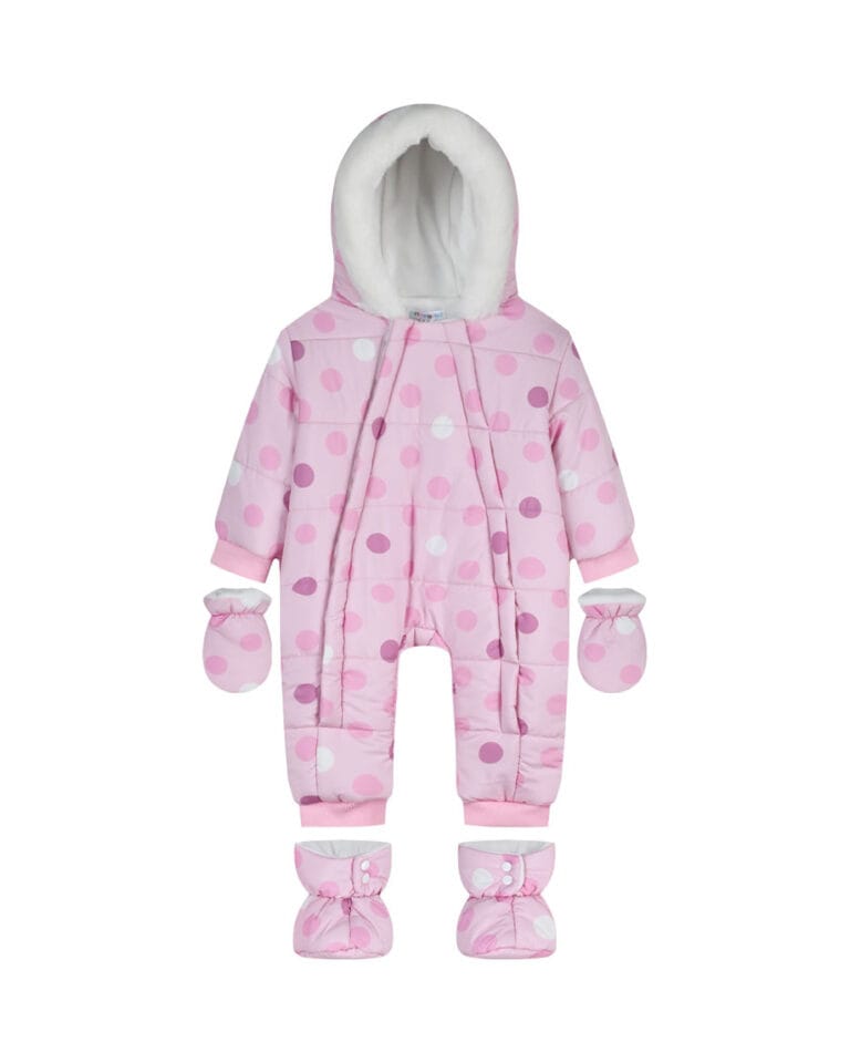 Φόρμα εξόδου ροζ πουά με γούνινη επένδυση με γαντάκια και ποδαράκια