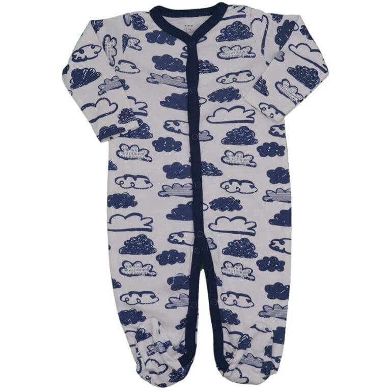 Φορμάκι ολόσωμο λευκό-μπλε σκούρο με Συννεφάκια