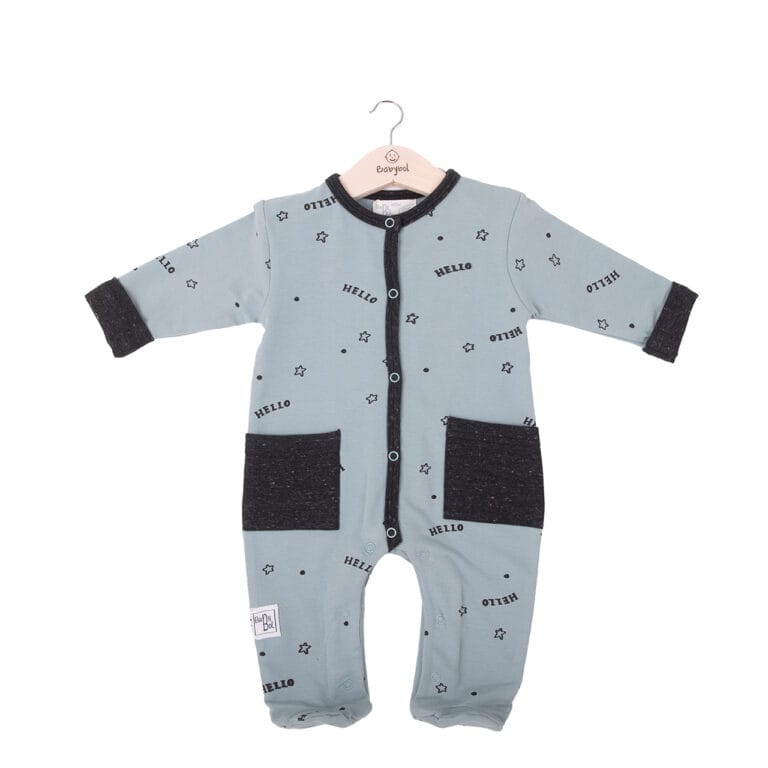 Φορμάκι ολόσωμο μπλε-γκρι με αστεράκια Hello