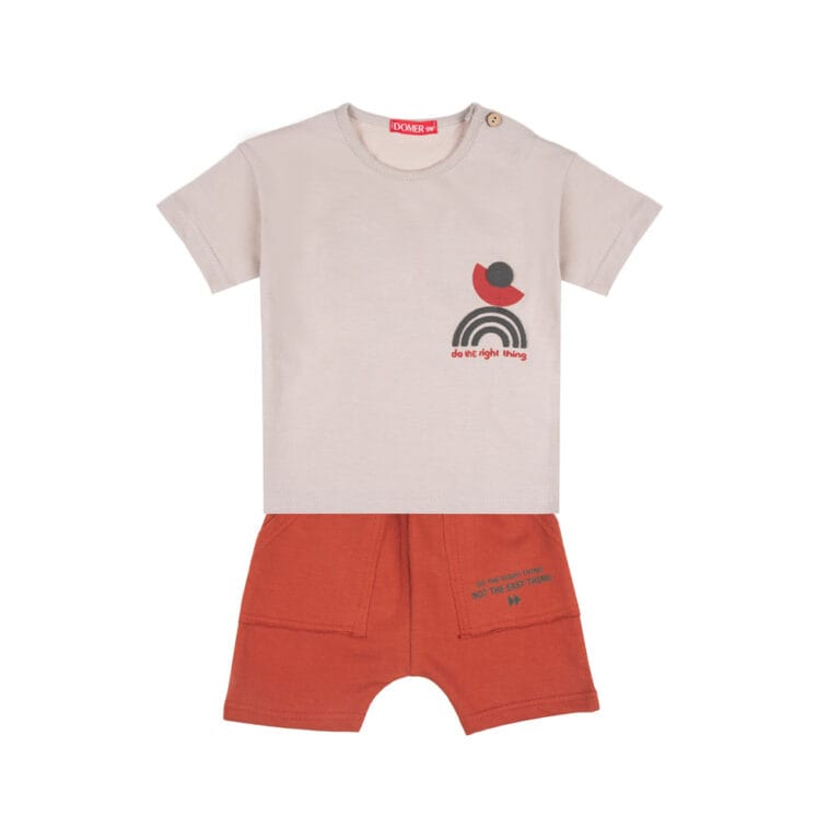 Σετ μπεζ-κεραμιδί με τύπωμα και στην πλάτη
