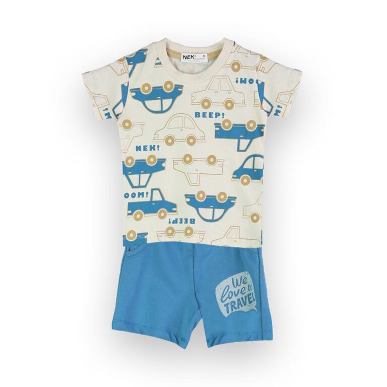 Σετ εκρού-μπλε με Αυτοκινητάκια