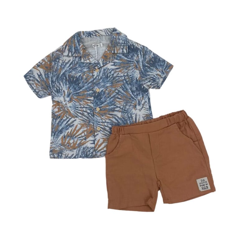 Σετ μπλε-ταμπά tropical με πουκάμισο