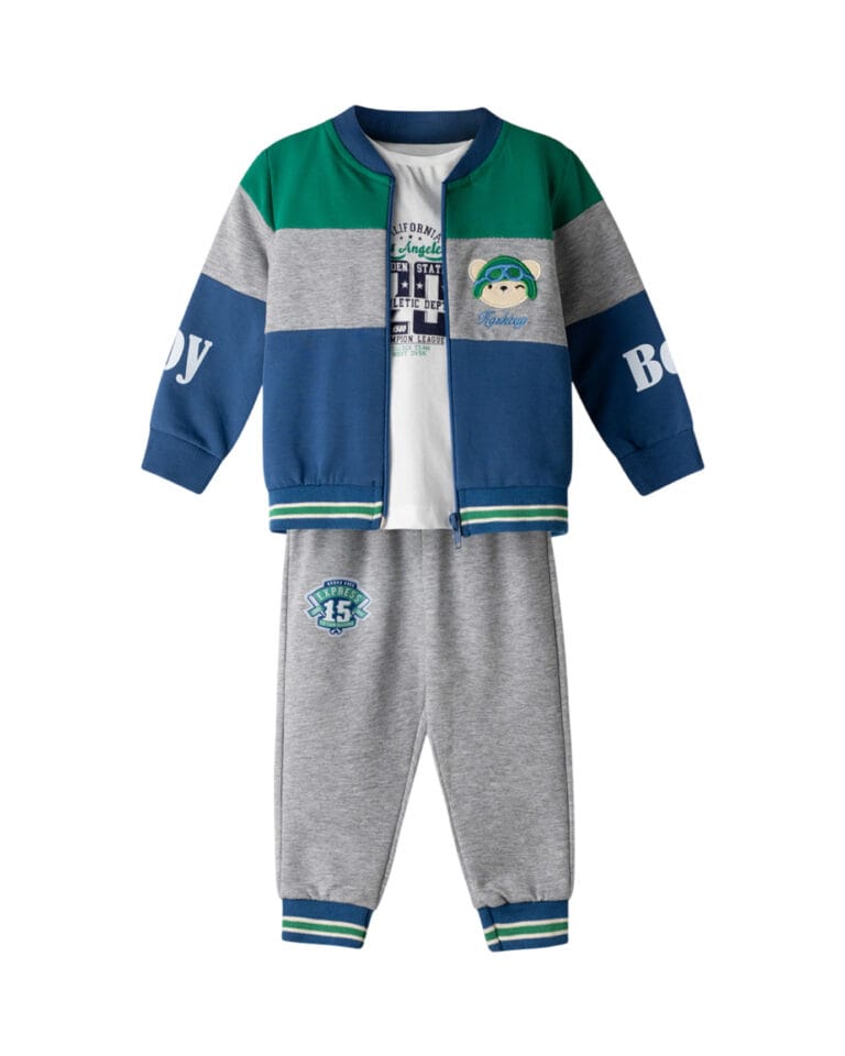 Βρεφικό σετ φόρμας αχνούδιαστο πετρόλ-μπεζ