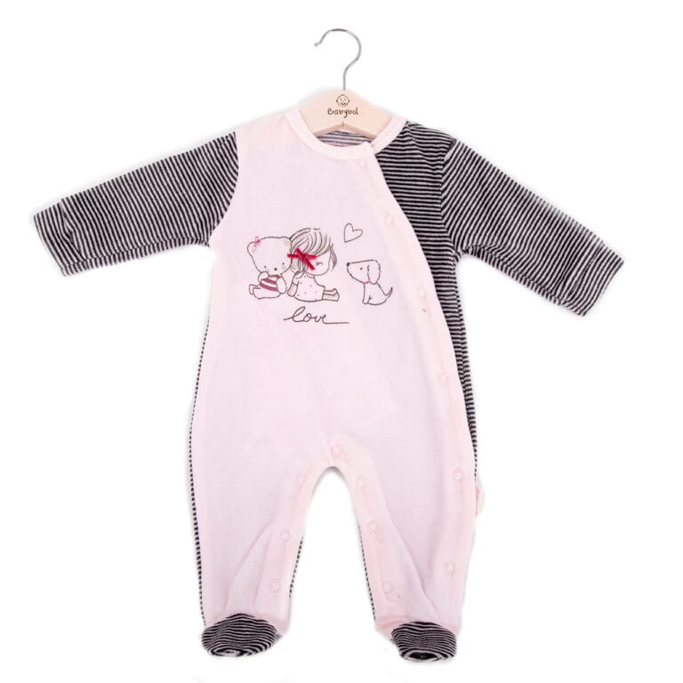 Φορμάκι ολόσωμο βελουτέ ροζ – ριγέ Love