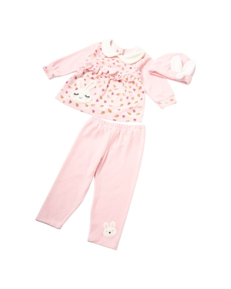 Βρεφικό σετ φόρμας βελουτέ Κουνελάκι με σκουφάκι