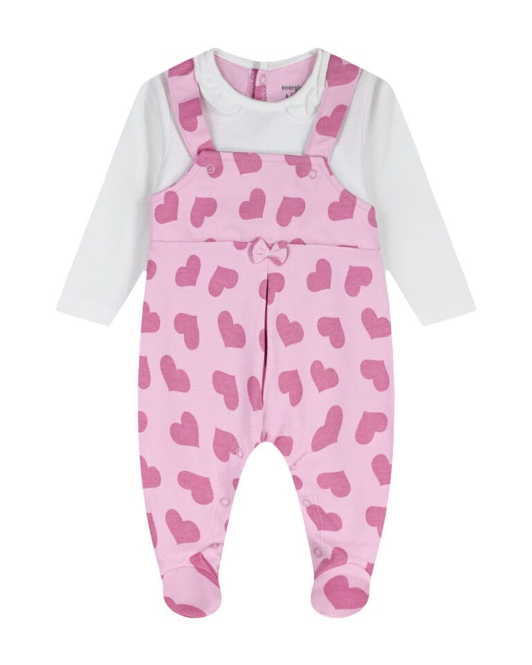 Βρεφικό φορμάκι-σαλοπέτα ροζ με καρδούλες