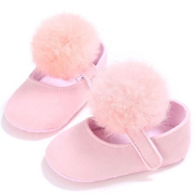 Μπαλαρίνες αγκαλιάς σομόν με μεγάλο γούνινο pon-pon