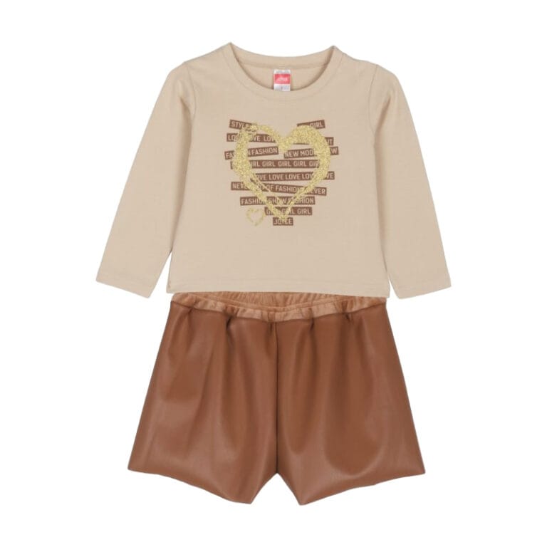 Σετ μπεζ-καφέ με σορτς από δερματίνη