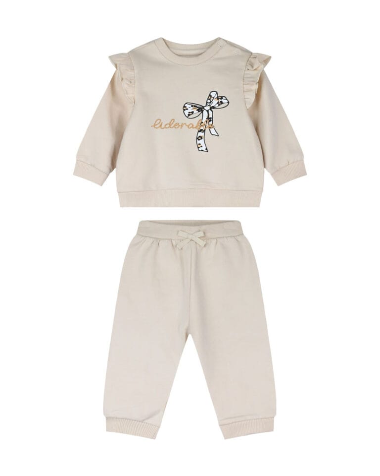 Βρεφικό σετ φόρμας με ελαφρύ χνούδι μπεζ με Φιογκάκι