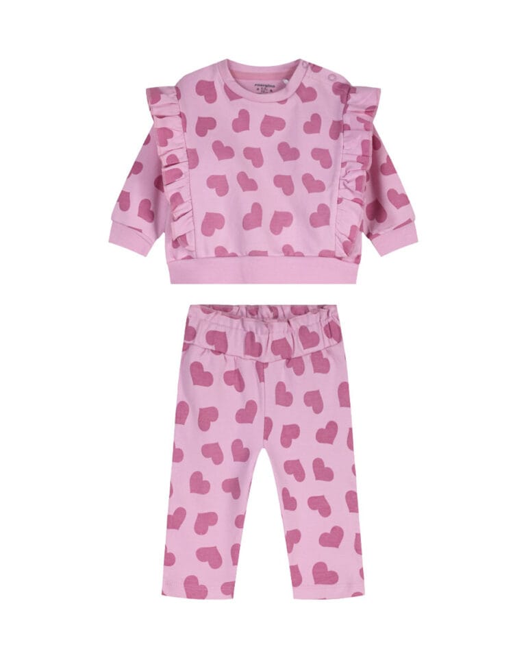 Βρεφικό σετ φόρμας αχνούδιαστο ροζ της πούδρας με Καρδούλες