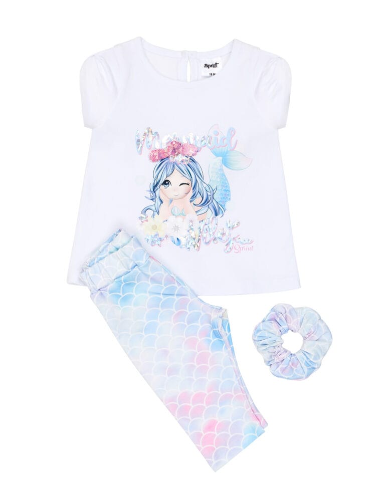 Παιδικό σετ για κορίτσι γαλάζιο-ροζ fluo με κολάν capri