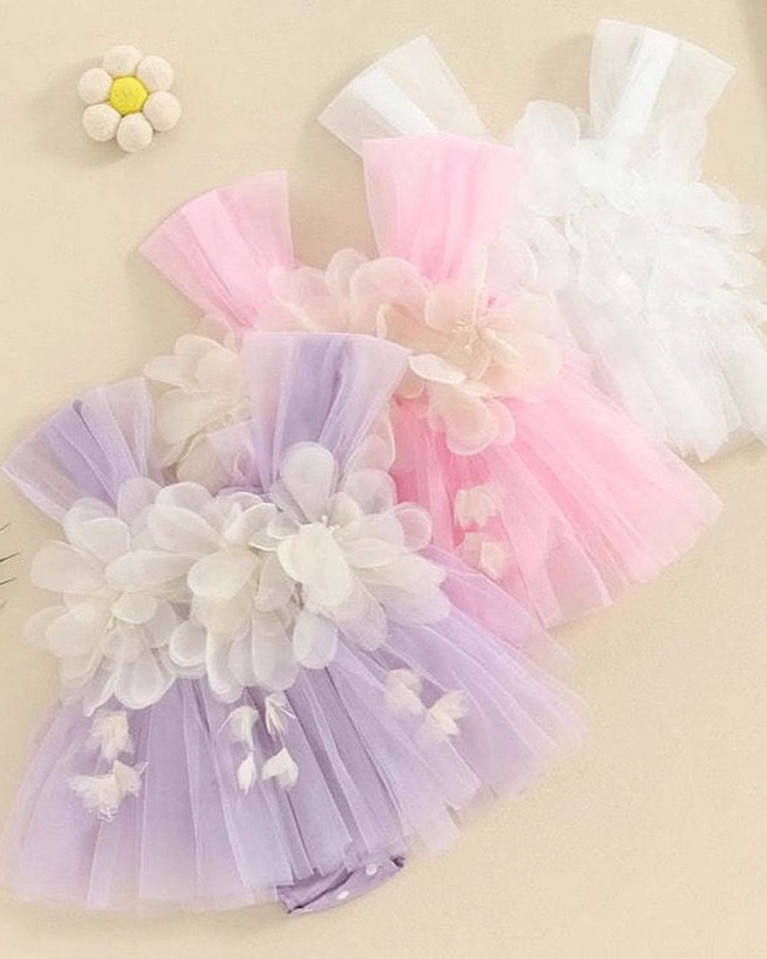 Βρεφικό κορμάκι-φόρεμα ροζ με 3D λουλούδια