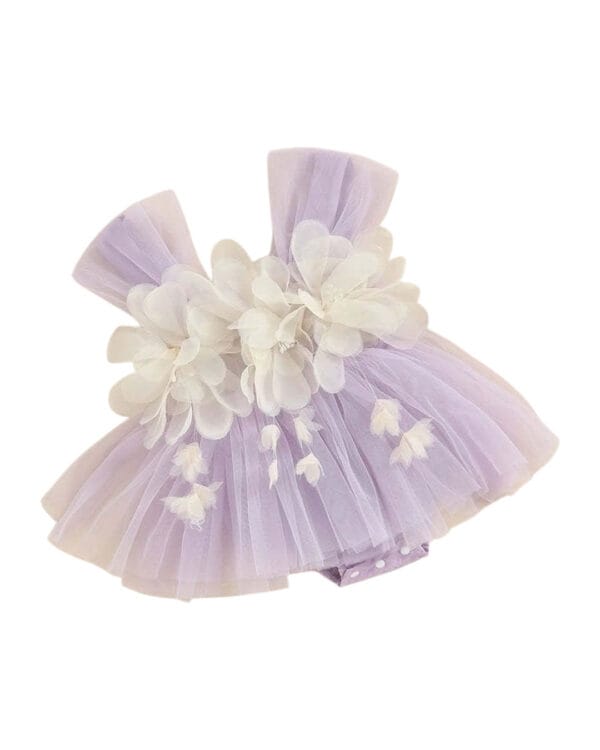 Κορμάκι-φόρεμα λιλά με 3D κεντητά λουλούδια και κορδέλα