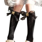 Κάλτσες λευκές ψηλές δαντελένιες με λευκό φιόγκο από οργάντζα και χρυσό αστεράκι.