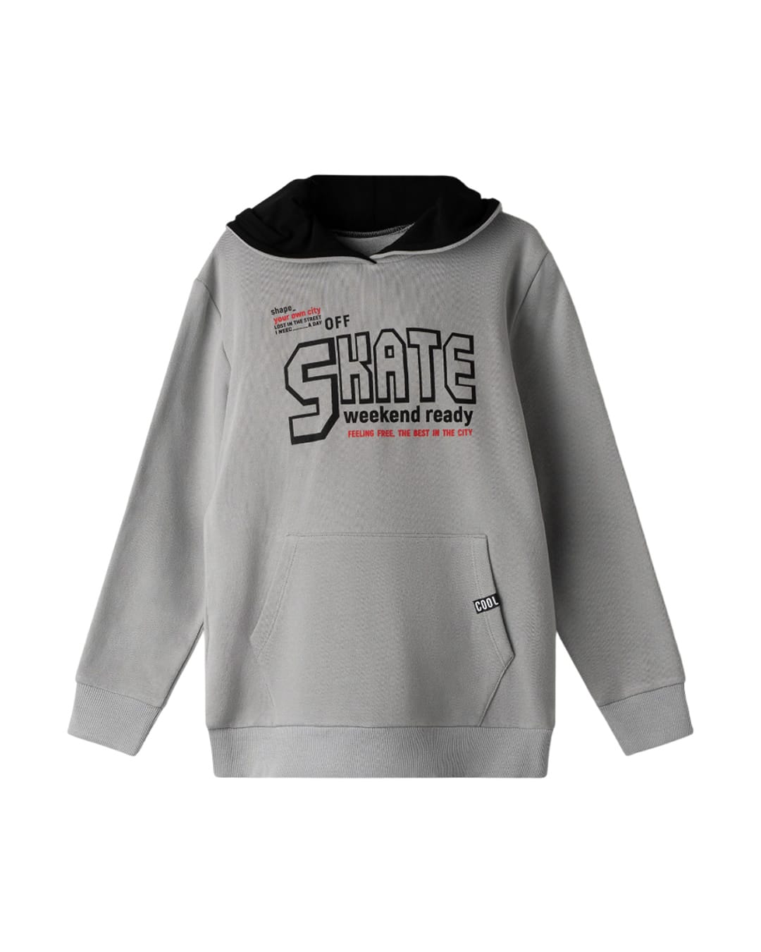 Μακρυμάνικη μπλούζα γκρι με τύπωμα skate, κουκούλα και τσέπη μπροστά