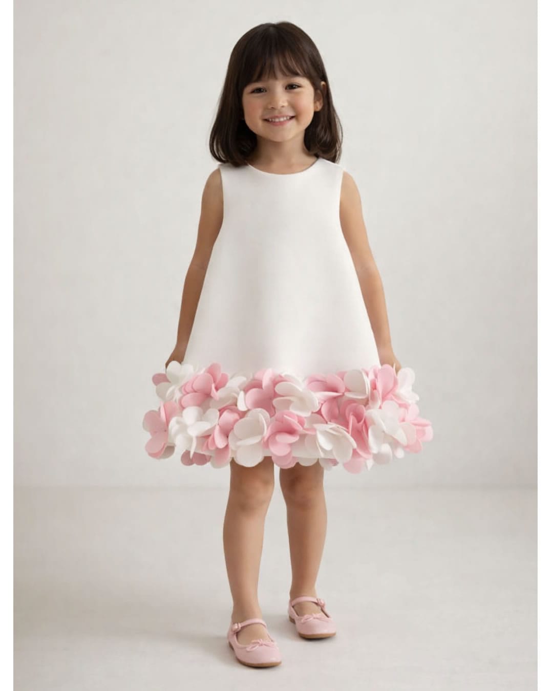 Φόρεμα λευκό-ροζ με τούλι και καρδούλες