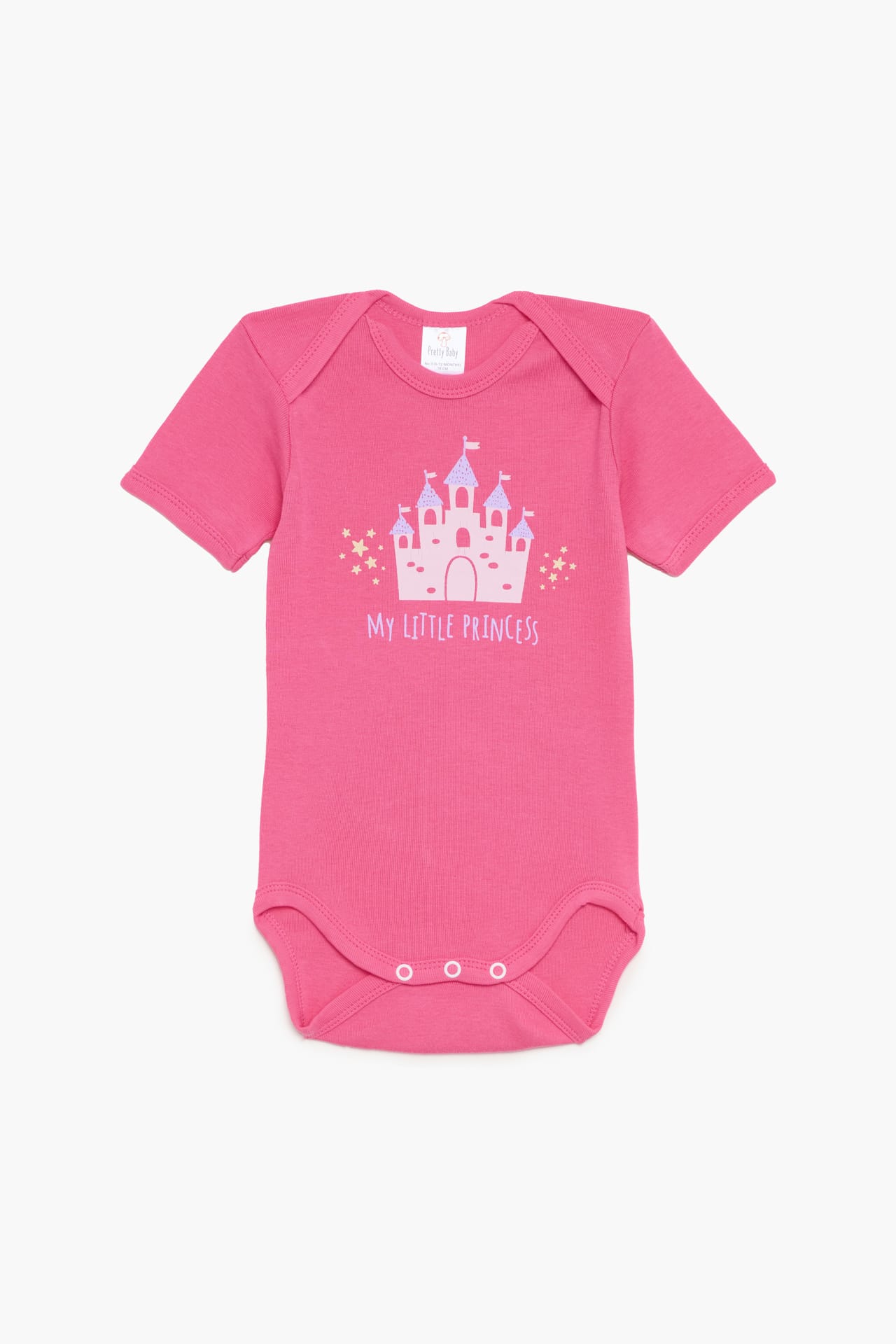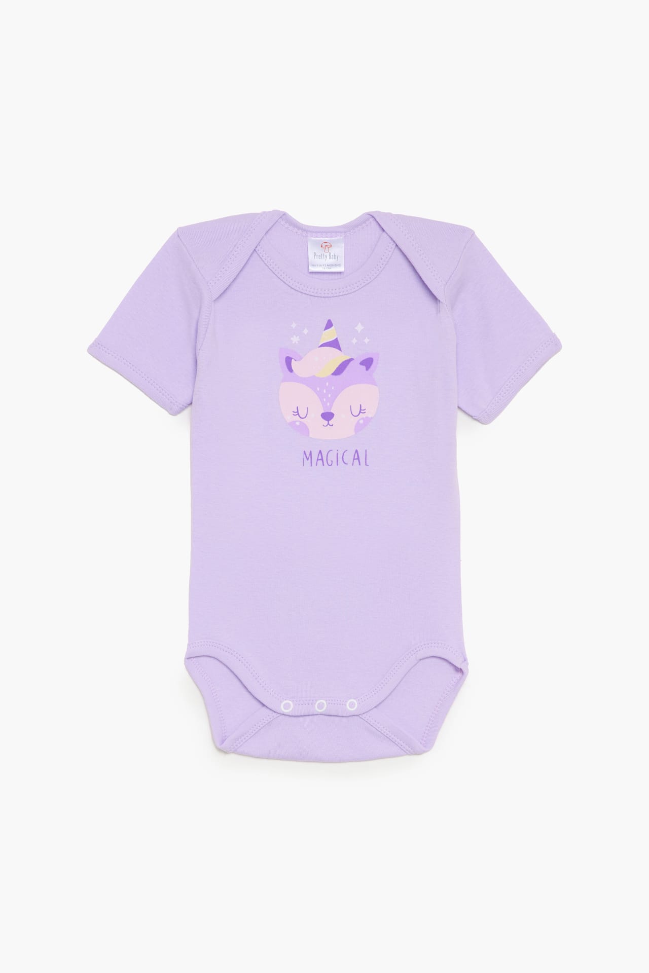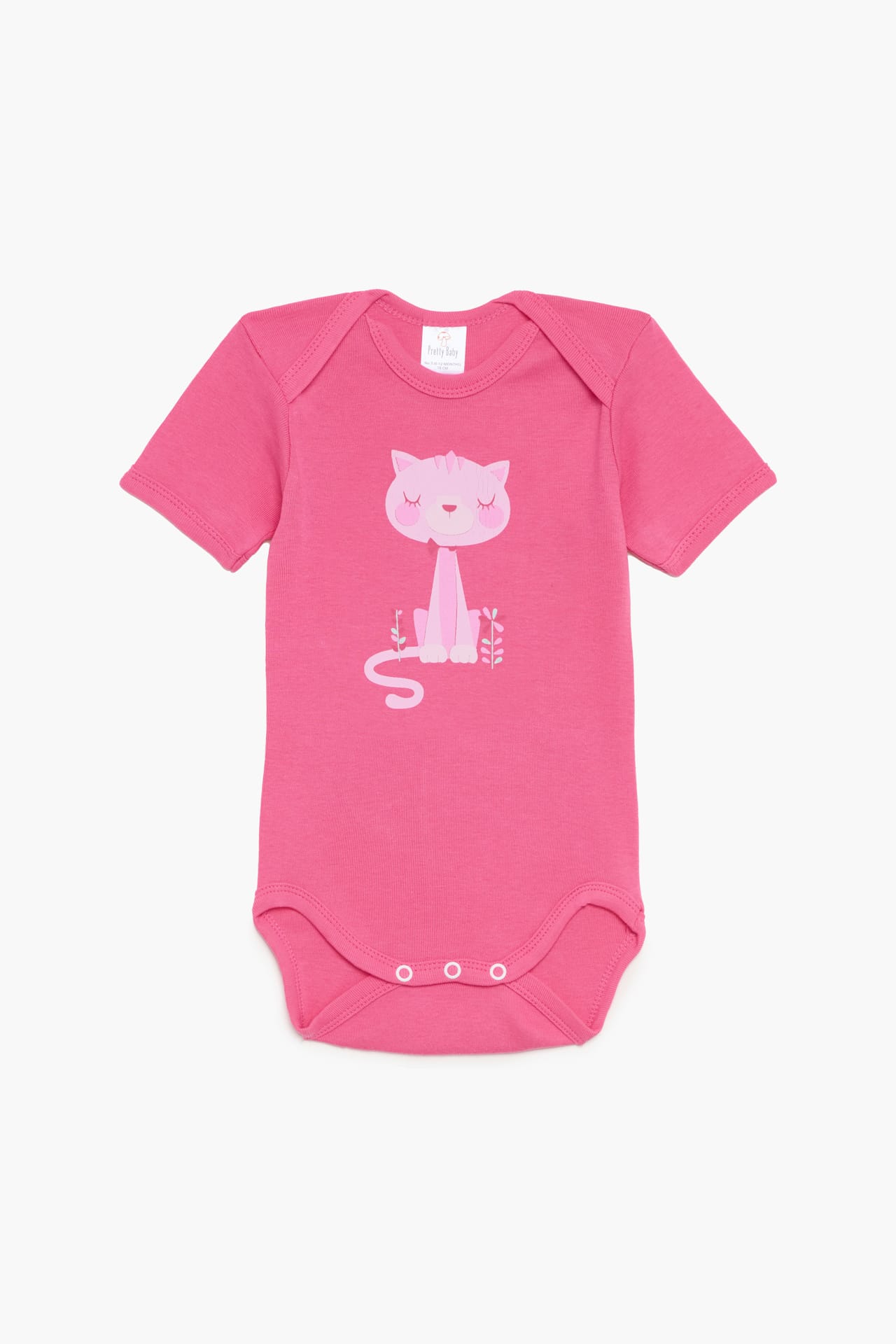 Βρεφικά κορμάκια για κορίτσι κοντομάνικα σε φούξια-ροζ-λιλά αποχρώσεις με διάφορα σχέδια.