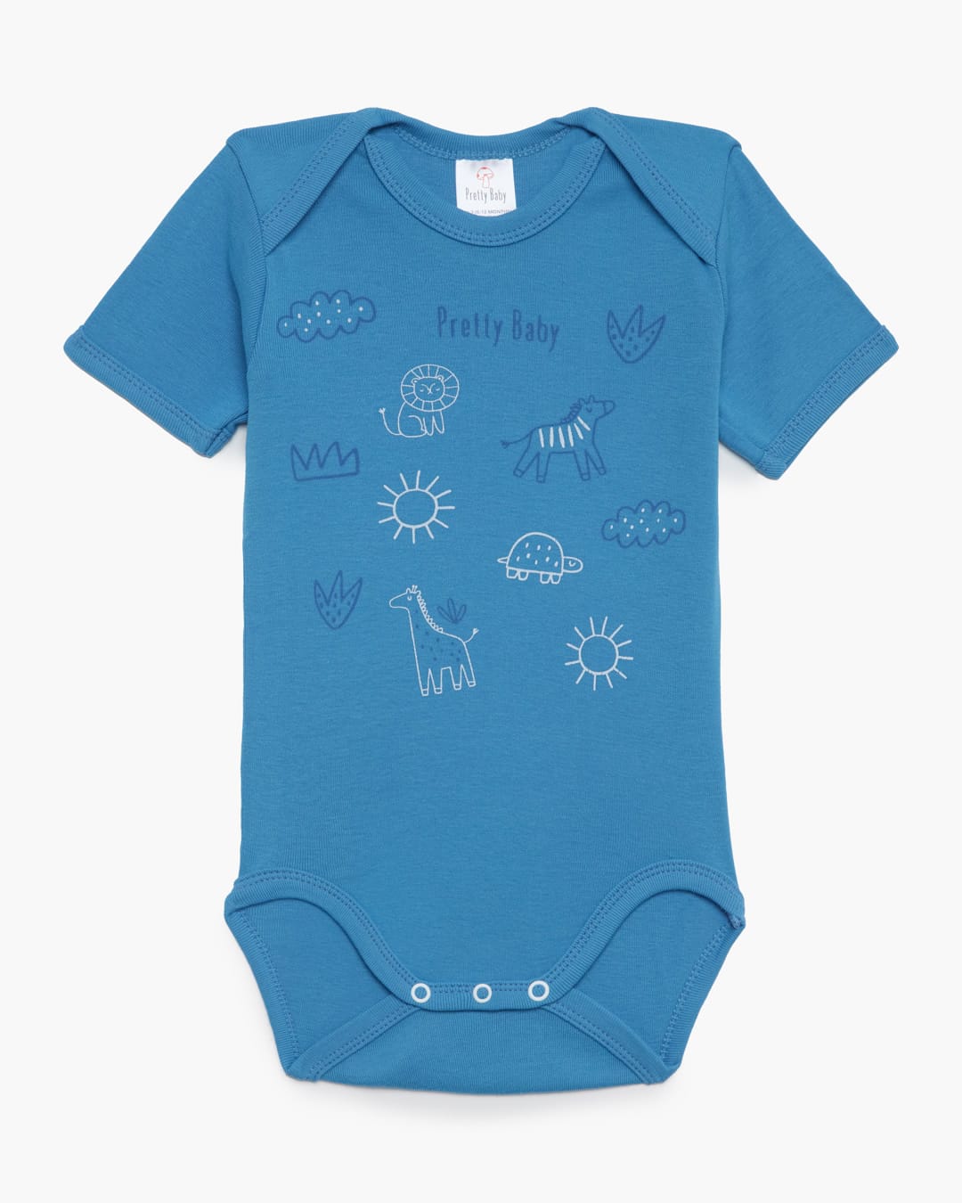 Βρεφικά κορμάκια κοντομάνικα σε μπλε αποχρώσεις με διάφορα σχέδια.