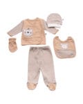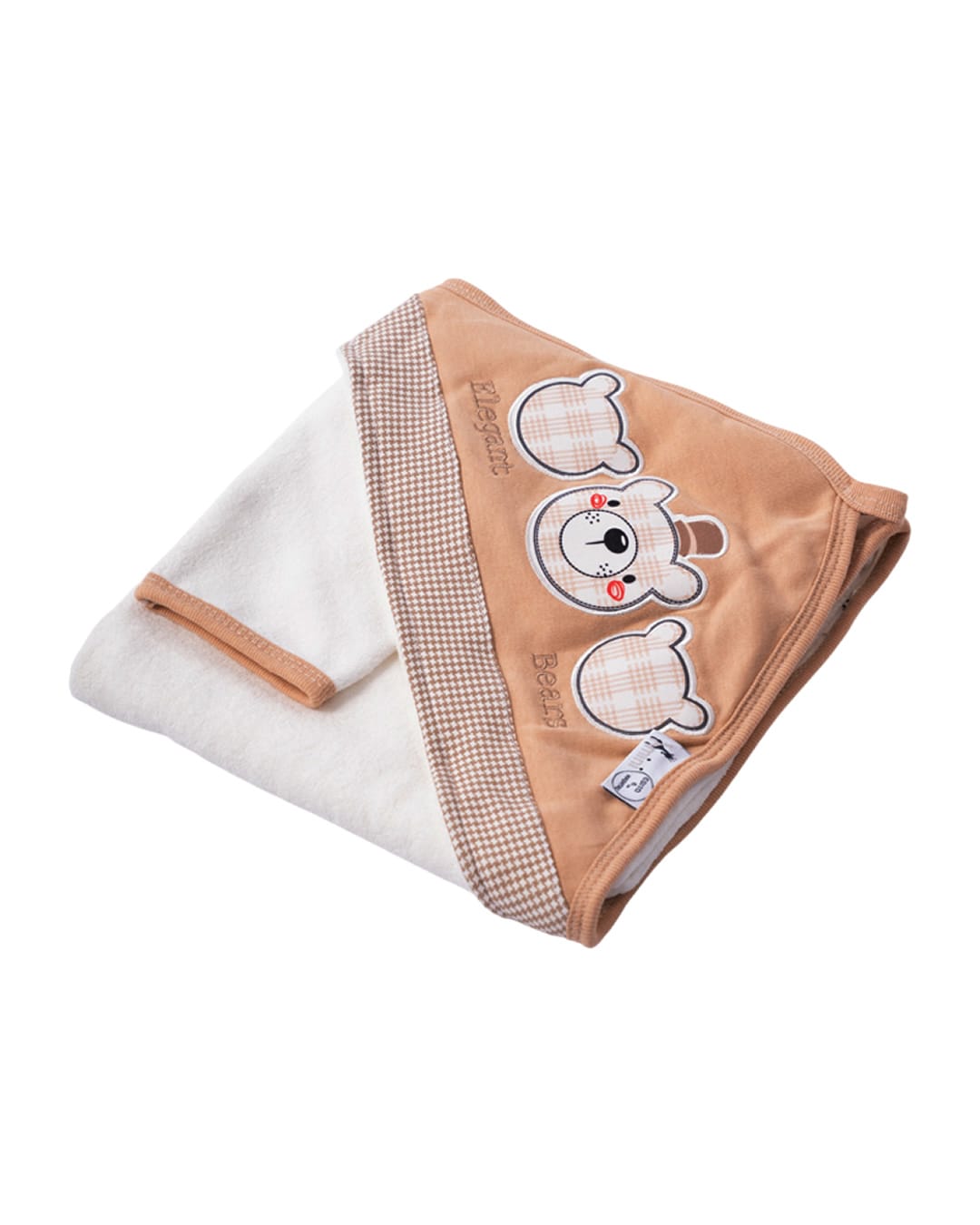 Βρεφική πετσέτα με κεφαλάκι σε λευκή-καφέ απόχρωση με κέντημα αρκουδάκι και γαντάκι.