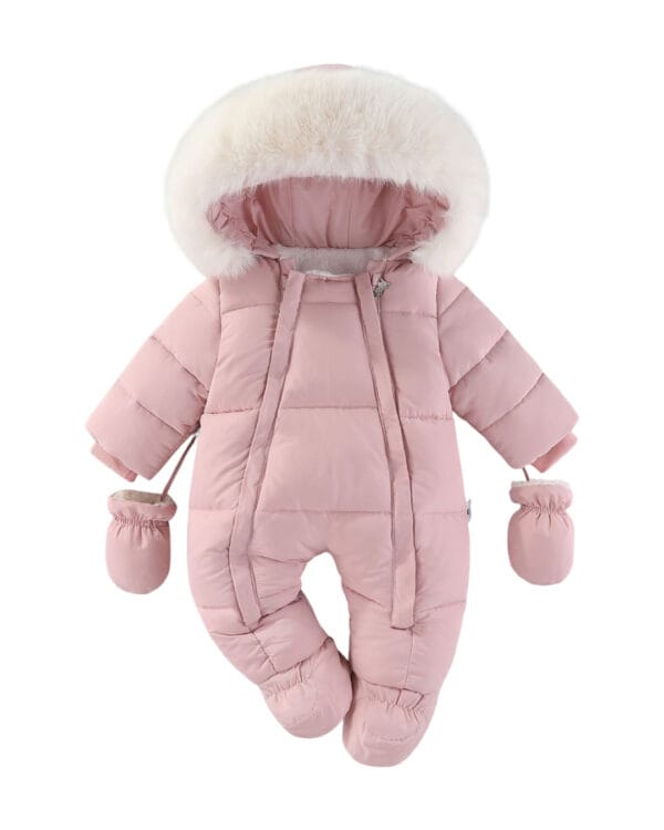 Φόρμα εξόδου ροζ με γούνινη επένδυση και γαντάκια