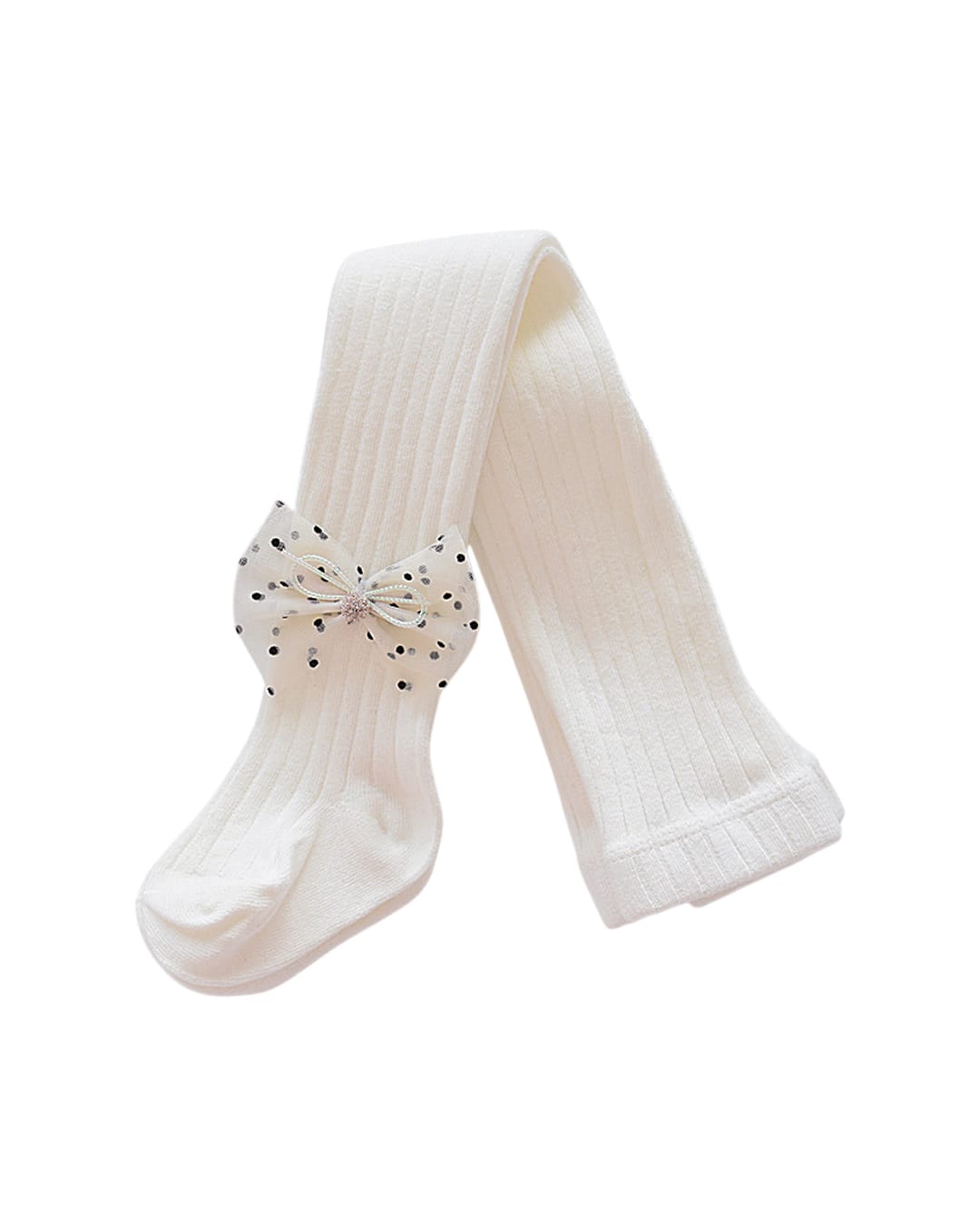 Βρεφικό καλσόν λευκό χοντρό με πουά φιογκάκι