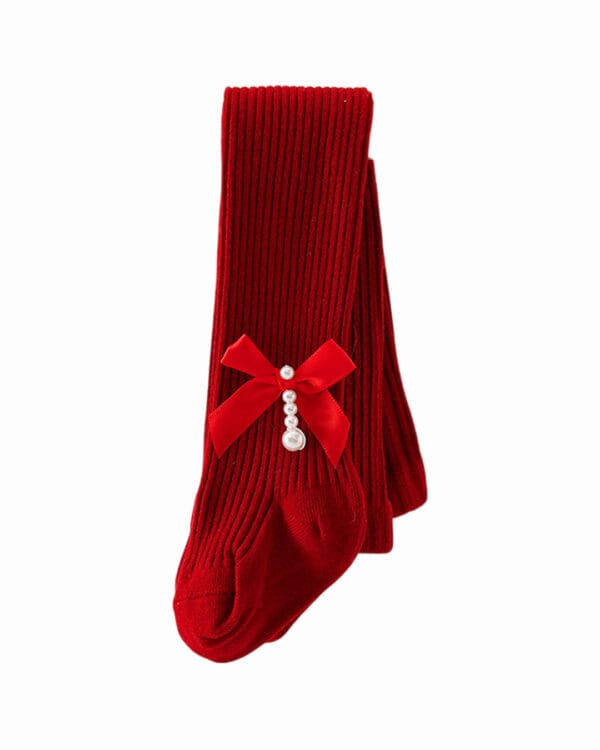 Βρεφικό/παιδικό καλσόν κόκκινο χοντρό με φιογκάκι και πέρλες