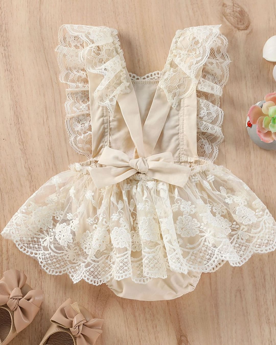 Βρεφικό κορμάκι εκρού με δαντελίτσα